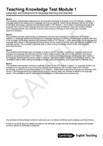 | Module 1 | Language and background to language learning/teaching | 80 questions | 80 minutes | Tests describing language, skills, teaching/learning theories |