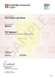 A TKT qualification shows solid understanding of language teaching concepts. This is ideal for teachers at B2 CEFR level or above seeking professional development.